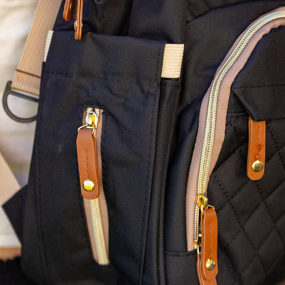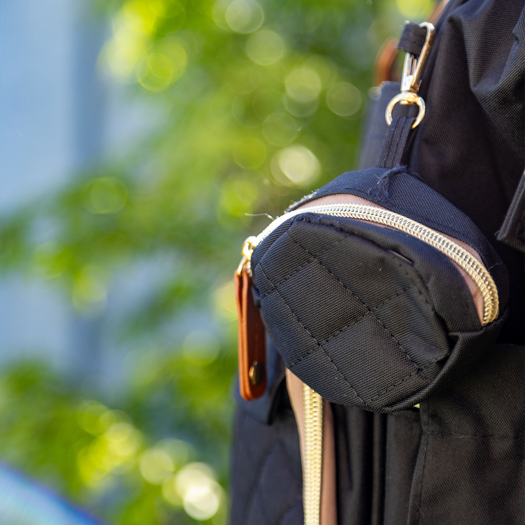 🔹 Bolsillos para Mamaderas: mantiene las mamaderas o biberones en posición vertical, disminuyendo el riesgo de derrame.